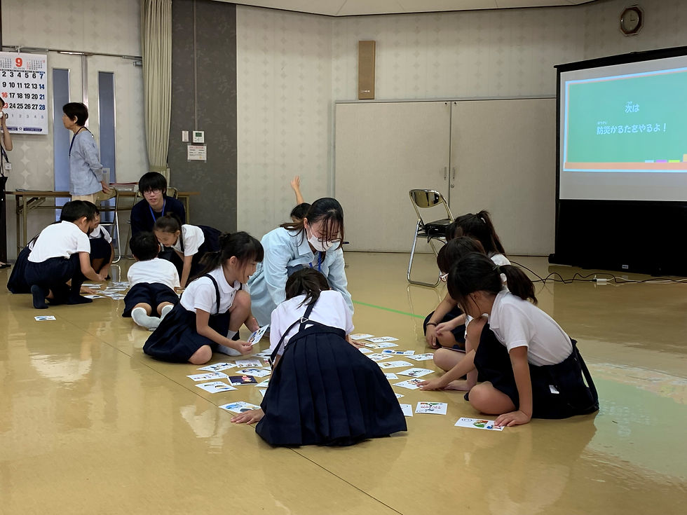 御園小学校放課後子ども教室にて、小学校1,2年生を対象とした防災教室を行いました。SoRAメンバーは4人参加し、クイズやカルタ等を子供たちと一緒に楽しみながら、防災について学びました。